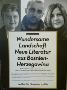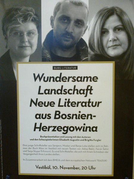 Im Rahmen der 9. Wiener Buchmesse stellten sich mehrere Schriftstellerinnen und Schriftsteller aus Bosnien und Herzegowina den österreichischen Lesern vor. Den Auftakt machte am 10. November ein Abend im Vestibül des Burgtheaters. Der Titel dieser Veranstaltung „Wundersame Landschaft“ ist einem Gedicht von Adisa Bašić entlehnt, die gemeinsam mit Tanja Stupar-Trifunović und Faruk Šehić aus ihren Werken gelesen hat. Den deutschen Übersetzungen haben die Burgschauspielerinnen Brigitta Furgler und Elisabeth Augustin Ihre Stimmen geliehen. Die junge Musikerin Andrea Nikolić setzte mit ihren musikalischen Interventionen besonders Akzente. Die 4 Stücke für Violine solo stammten von jungen KomponistInnen aus Bosnien-Herzegowina und erklangen zum ersten Mal in Österreich.