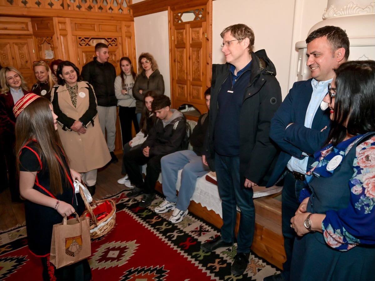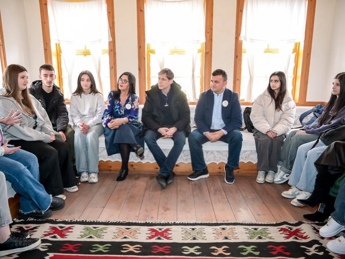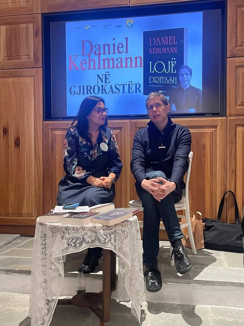 Der 31. März brachte ein besonderes literarisches Ereignis nach Gjirokastër. Im Salon des Geburtshauses von Ismail Kadare präsentierte der Autor Daniel Kehlmann gemeinsam mit seiner albanischen Übersetzerin Anna Kove das Buch Lichtspiel / Lojë dritash. Die Atmosphäre war warm und von Neugier erfüllt: Die Schüler:innen des Gymnasiums für Fremdsprachen verfolgten jeden Gedankengang des Autors. Anschließend traf Kehlmann auch die Intellektuellen der Stadt zu einem offenen Dialog über den Roman. Genau an diesem Tag wurde die Shortlist des International Booker Prize bekannt gegeben — ein schönes und symbolisches Zusammentreffen, und zwar im Haus von Ismail Kadare, des ersten Schriftstellers, der diesen Preis erhalten hat.