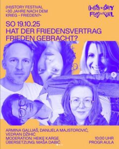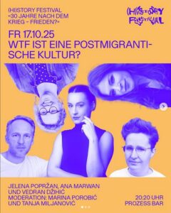 The (HI)STORY Festival – 30 Years After the War – Peace? brings together writers, artists, and scholars from Southeast Europe and the diaspora in Bern — across borders, with stories that look back in order to think about the future.